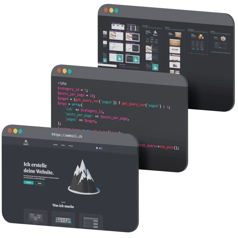 Gemäss den abgemachten Eckpunkten gestalte ich dir zwei Design-Vorschläge aus bestehenden Vorlagen (Paket «Basic» und «Standard«) bzw. ein komplettes Design von Grund auf (Paket «Erweitert«).
