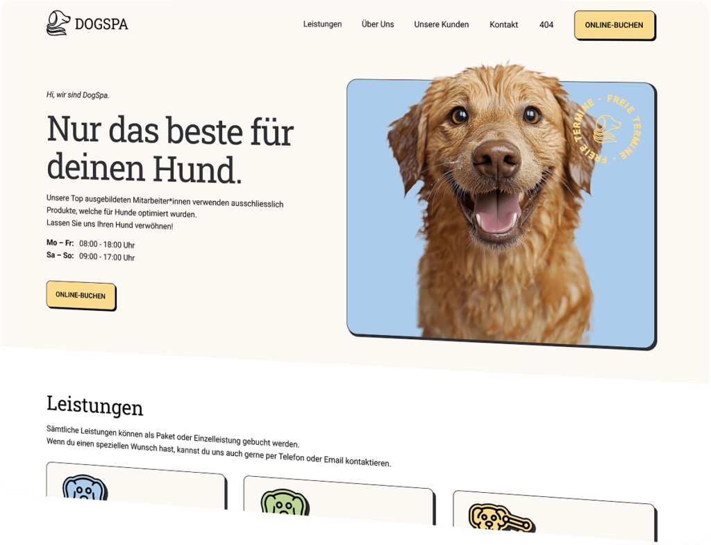 Ein Konzept für moderne Hundefriseursalons. Funktionalität trifft auf neo Brutalism und einfache, durchdachte Gestaltung.